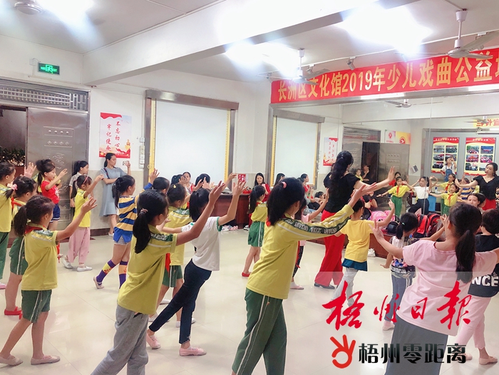 在長洲區文化館戲曲公益培訓班上,鐘杏沂認真教導孩子們學習粵劇。 (本組圖片由李紅鳴提供) 如何讓學生喜歡上粵劇文化?這是鐘杏沂來到長洲區文化館任教后思考的問題。曾經,她去北京上過肚皮舞教練的課程,學會了一套以創新為主的快速的藝術教學方法。于是,她把自己學會的教學方法運用到培訓班的教學中去,在粵劇文化傳統的教學技藝上,進行創新,不斷策劃新意與傳統相結合的粵劇曲目,以吸引孩子們的興趣。 如今,除了指導學生們學習,鐘杏沂還參加“戲曲進校園”粵劇培訓展演系列活動,駐校輔導學生粵劇身段和唱腔,創編并執排戲曲舞蹈。 付出總會有回報,在鐘杏沂的努力教學下,不少學生對粵劇越來越喜歡了,成績亮眼。2019年7月,鐘杏沂輔導學生演出的粵劇折子戲《別洞觀景》,主演林子涵獲得中國少兒戲曲最高獎項——第23屆中國少兒戲曲小梅花金花。 “做好自己的工作,讓更多的孩子喜歡粵劇文化,壯大我們的粵劇文化傳承人隊伍。”2019年,鐘杏沂被認定為梧州市級非物質文化遺產項目梧州粵劇代表性傳承人。肩負重任,她益發堅定腳步,下定決心要創作更多的粵劇精品,做好每一次的演出,教好每一堂課。 |