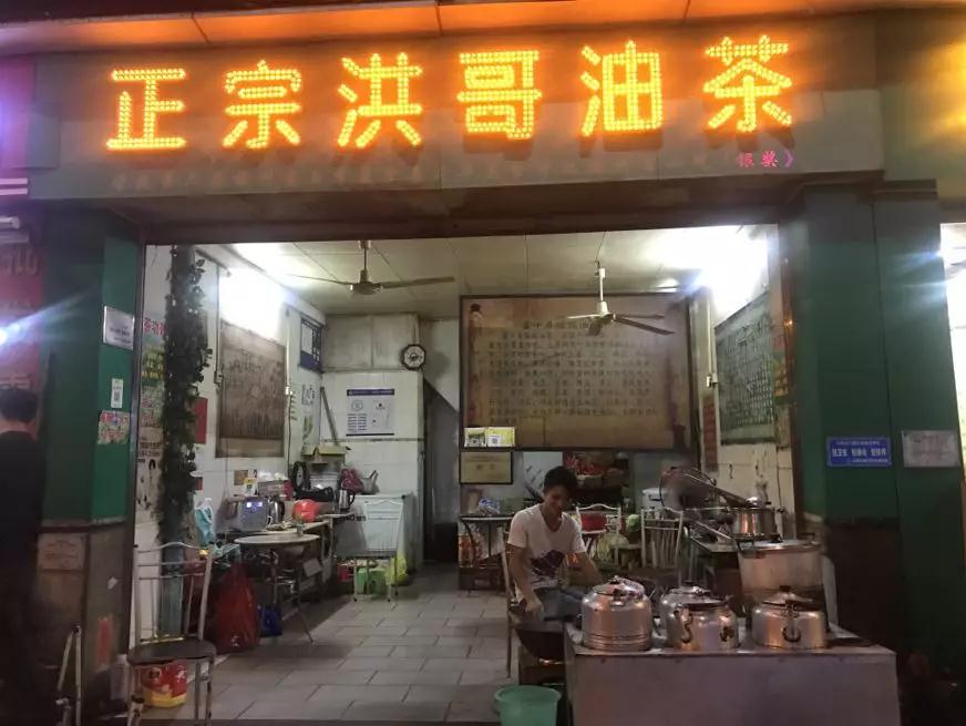 “吱”的一聲,伴隨著幾顆拍過的生姜和蒜頭倒進裝有茶葉的棰茶鍋里,并且在沸騰的油中不斷翻滾,一股混合著姜、蒜和茶誘人的香味馬上溢出鍋頭,飄散四方。而這股香味,每天都會從這家叫正宗洪哥油茶店的店里飄出,一飄就是20多年。