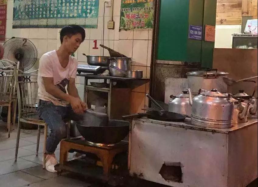 晚上八點半,正宗洪哥油茶店門前已經坐了不少前來喝油茶的人。店面里,是辛勤打茶的小哥。而這家店的老板洪哥,正在忙前忙后招呼客人。