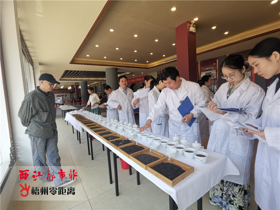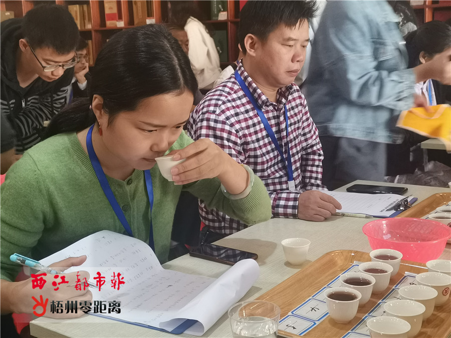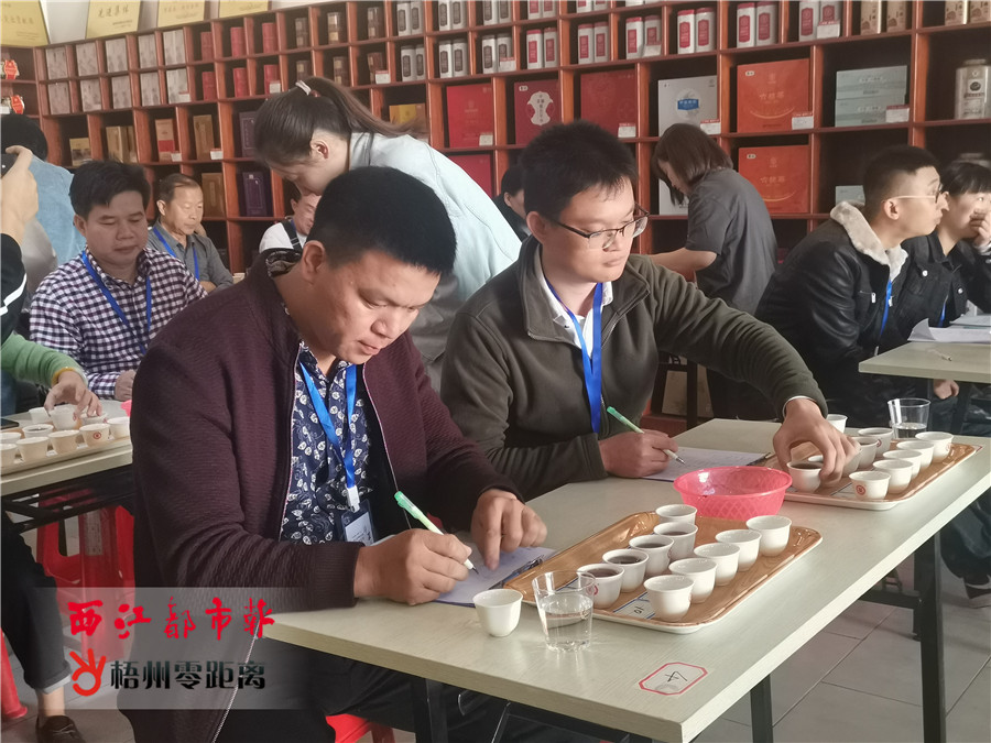 茗茶六堡,茶人鏖戰(zhàn)。11月10日上午,由梧州中茶茶業(yè)有限公司全程總冠名贊助的“中茶杯”2019梧州六堡茶民間斗茶大賽,再次在中茶展示大廳展開精彩對決。“金舌頭對決”與“茶葉比斗”兩項目同時展開首場復(fù)賽。經(jīng)過激烈的對決,5名“金舌頭”晉級總決賽。 “金舌頭”鏖戰(zhàn)賽場 當(dāng)天9時30分,“金舌頭對決”的賽場上,緊張氣氛彌漫開來,19名“金舌頭”選手需要對10個茶樣進(jìn)行盲評。選手們分組上前進(jìn)行品評,記下茶湯的顏色、香氣、味道等。