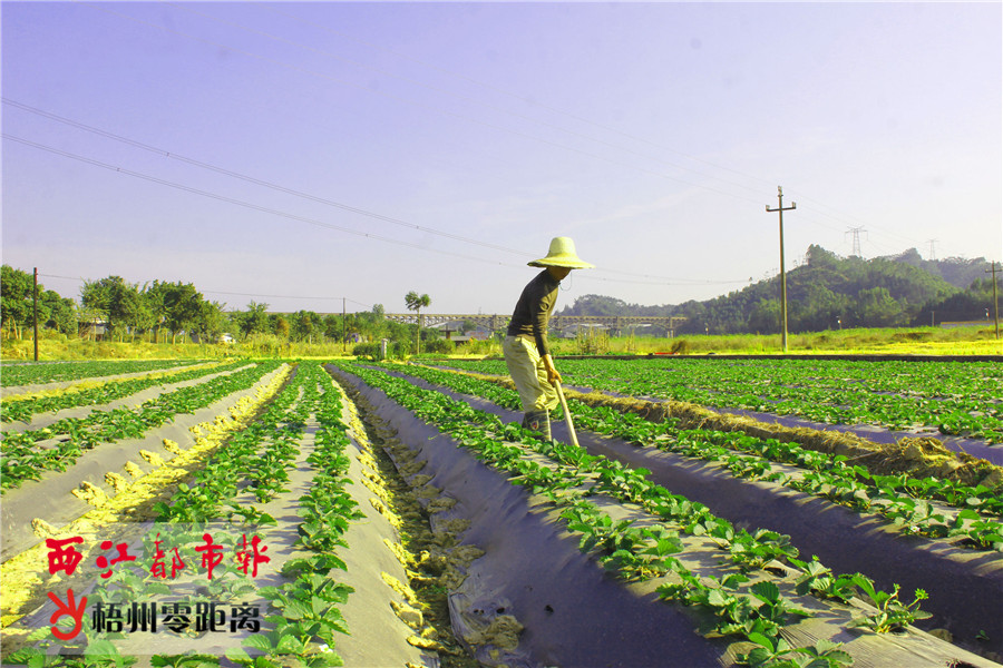 11月12日,蒙山縣蒙山鎮北樓村農戶對冬種草莓進行精心護理。近日,北樓村程村生態園引進“奶香草莓”品種,發展50畝草莓種植。目前,農戶加緊除草松根、施用生態有機肥料,保障草莓的正常生長。江永錄 攝
