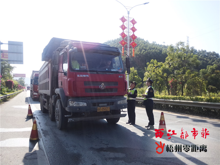 梧州零距離-西江都市報訊(記者 姚藍婷 通訊員 楊芳 黃穎盈)近日,梧州市交通運輸、公安交警、高速公路路政等部門通力合作,在市轄區多個高速公路入口治超點加強聯合執法,重點打擊“百噸王”超限超載違法行為。 11月14日上午9時30分,記者在梧州站(平浪)高速公路入口附近看到,路面分兩段車道,載重貨車依次經過治超點前哨、中哨和后哨。載重貨車經過中哨時,執法人員對該運輸車輛開展檢查工作,一邊對司機提供的駕照、行駛證、裝載貨物的磅單進行核查,一邊安排駕駛貨車通過便捷式稱重儀實時監測車貨總重。據悉,當監測貨車存在超限超載情況后,執法人員會立即對貨車司機進行處罰,將超限超載車輛押往停車場作進一步卸載處理。