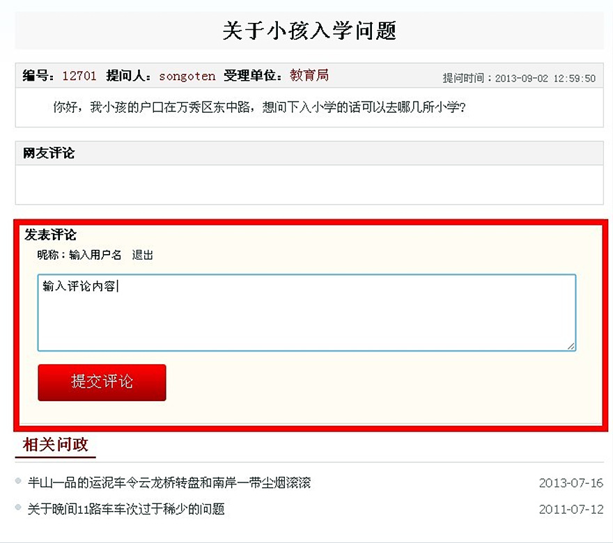 3、評論:網友登錄后,在帖子評論區中輸入評論內容,提交評論發表。