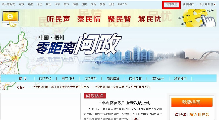 4、搜索帖子:登錄賬號后,在首頁頂部右邊點擊“高級搜索”。