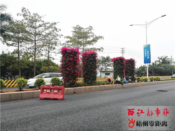 梧州零距離網-西江都市報訊(記者吳艷虹)繼中山路、西江一二三路、和平路等道路提升工程開展之后,近段時間,梧封一級公路改造提升工程亦開工建設,工程預計2020年春節前完工。 11月27日,記者看到,云龍大橋北橋頭—半山一品段的道路,混凝土路面已經做開刨處理,云龍大橋北橋頭—云龍小區段有幾米長的道路鋪滿了碎石子。從云龍小區往東方向至龍船沖客運站一帶的道路已經鋪設了瀝青,瀝青鋪設后的路面高度比原本路面高出約4厘米。其中,云龍大橋北橋頭—云龍小區段東往西方向的道路上設置了隔離欄,用以區分機動車和非機動車的行駛區域。梧封一級公路中央綠化帶的基礎部分已經新建完畢,部分路段種植了寶巾花立體花柱及其他喬灌木,綠化工人正在疏松泥土,為綠苗的種植做前期準備。 據悉,梧封一級公路改造起點位于云龍大橋北橋頭,改造終點為廣西壯族自治區與廣東省國道321界碑處。該道路為國道207的一部分,改造路段全長9761.273米,寬度為20米,設計時速為60公里。