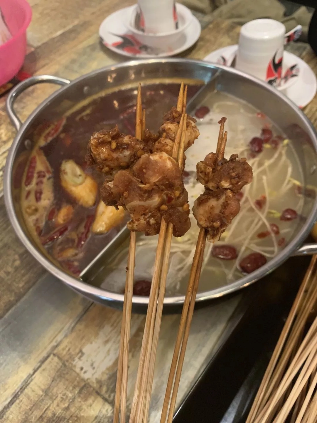 地址:蝶山二路蝶彩新城c10號樓9號鋪 (即潘塘農(nóng)業(yè)銀行往龍骨沖方向20米) 營業(yè)時間:11:00-01:00 食 評 小雞準(zhǔn)備得發(fā)達(dá):這家的麻辣鍋底有一股獨特的中藥香氣,牛骨湯底白得像加了牛奶一樣,可以直接喝。我很喜歡吃麻辣火鍋,每次吃完都會腹瀉;但在這家吃了3、4次了,吃的時候真的非常辣,辣得渾身冒汗不停喝水的程度,但之后沒有發(fā)生腹瀉的情況,不知道是不是與底料的中藥味有關(guān)。 lizhuotan:這里的串串真的是真材實料,紅油湯很香,牛油味十足,就像以前在四川吃的牛油火鍋一樣,特別是清湯鍋底使用牛骨熬成的,鮮美異常,喝了一碗還想喝第二碗。肥腸結(jié)是用牛腸做的,吃起來甘香可口,蝦很大,估計是海蝦。 其寶寶的媽:串串可能已經(jīng)腌制過,所以不蘸任何醬料直接吃,也覺得滋味十足。最驚喜的是牛腸結(jié),吃起來爽脆可口,回甘無比。