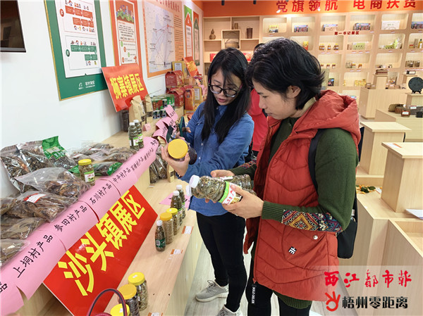11月28日,位于蒼梧縣石橋鎮(zhèn)的新縣城廉租房小區(qū)附近的淘寶館內(nèi),蒼梧縣農(nóng)產(chǎn)品產(chǎn)銷對(duì)接電商出村活動(dòng)現(xiàn)場(chǎng)展銷多種特色農(nóng)產(chǎn)品。活動(dòng)中,蒼梧縣9個(gè)鄉(xiāng)鎮(zhèn)分設(shè)專門的展區(qū),駐村工作隊(duì)帶著各村的特色農(nóng)產(chǎn)品,如六堡茶、砂糖橘、紅菌等,向參觀者介紹農(nóng)產(chǎn)品的特色。記者紀(jì)榮蘭通訊員李英琪攝影報(bào)道 |