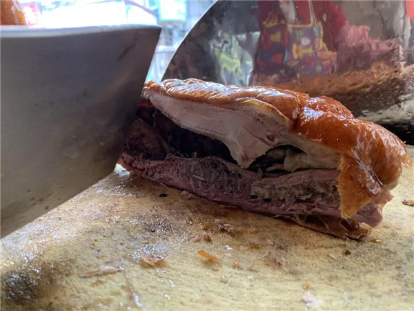 記得小時(shí)候,橙子姐每次路過燒鹵店,透過泛著黃色油光的玻璃,看著里面掛著的一排排燒鴨、烤雞和叉燒,口水從來都控制不住。再看那些在燒鹵店門口排起的長(zhǎng)隊(duì),就知道燒鹵在梧州人心中的重要地位。