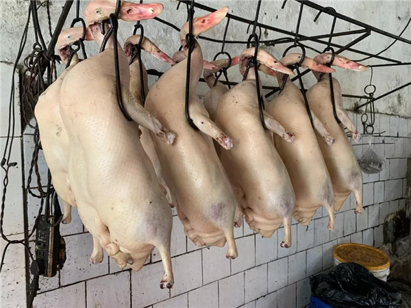新鮮出爐的燒鴨泛著亮亮的油光。 甜蜜鴨下巴