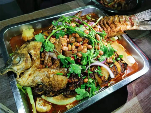 諸葛烤魚 諸葛烤魚是一道特色傳統名菜。烤魚系列為主特色,烤魚、功夫鹵、香水魚、精品系列為輔的菜系產品,分為麻辣、清香兩大系列。贛味館出品的烤魚在刺猬姐看來,屬于偏清香類型。也許是顧忌到梧州人的口味,烤魚沒有平時烤魚的麻和辣,紅油也比較少,口味清淡,焦香味甚少,口味淡又想去吃烤魚的食客們可以去試一試。