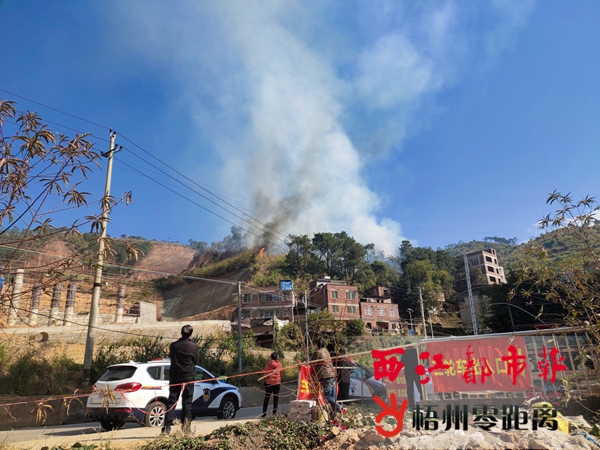據現場群眾反映,10時30分左右首批消防救援隊員就趕到現場展開山火撲救工作。11時17分,兩輛消防車趕到現場增援,消防救援隊員到達現場后,對周邊地形進行觀察并展開撲救。12時許,就在山火即將要燒到山邊居民樓時,消防救援隊員及時將靠近居民區一側的主要山火撲滅。此時,靠近居民樓一側已看不到明火,但還有滾滾濃煙冒出。而在離居民樓較遠處及山頂,則仍有明火繼續蔓延。 山火向周邊蔓延 4支專業森林消防隊參與滅火 據長洲區新興村工作人員張先生表示,當天上午10時許接到群眾反映后,新興村立即向消防部門反饋,并組織人員前往現場。為保障群眾的生命安全,工作人員第一時間組織周邊約20戶居民撤離。同時,在確保安全的情況下,工作人員聯同周邊居民,利用居民家中的自來水,協助消防救援人員展開撲救工作。截至當天14時許,居民區周邊山火已基本被撲滅,但仍有山火趁著風勢向其他區域蔓延。 15時30分許,記者向梧州市應急管理局了解到,接到報警后,長洲區專業森林消防隊立即前往現場參與山火撲救行動;12時許,萬秀區專業森林消防隊前往增援。截至15時30分,已有包括專業森林消防隊員及當地干部群眾共100多人參與到撲救行動中。 當天下午,山火繼續向周邊蔓延,截至12月5日21時,已有長洲區、萬秀區、龍圩區以及蒼梧縣等4支專業森林消防隊參與到山火撲救工作當中,現場消防人員分為多支隊伍,采取人工開設隔離帶、反燒和風力滅火機直接撲打相結合方式滅火。