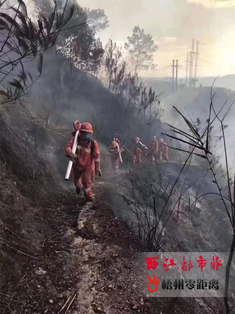 “最美逆行人”繼續朝著山火燃燒的方向前進。(梧州網友供圖)
