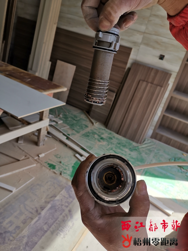 梧州零距離網-西江都市報訊(記者 紀榮蘭)近日,壹品尊府小區(qū)的業(yè)主李女士致電本報反映,小區(qū)的供水方式是在市政給水管道引入供水管道進小區(qū),安裝總表,表后管段由房地產公司接通水表接至小區(qū)加壓泵房,再供水到各家各戶,但是由于小區(qū)物業(yè)公司管理不規(guī)范,導致小區(qū)居民用水水質安全得不到保障。該業(yè)主希望有關部門介入協(xié)調,對小區(qū)供水進行市政直接供水的一戶一表改造。 受訪業(yè)主:小區(qū)水質不佳雜質多 12月5日,記者就李女士反映的問題到壹品尊府小區(qū)進行了走訪。據(jù)記者現(xiàn)場了解,壹品尊府位于長洲區(qū)三龍東二路22號,小區(qū)一期共4棟,每棟地上17層,共256戶,主要用水為居民用水;泵房位于5棟地下室。目前該小區(qū)入住率并不高,約40戶,部分房屋正在裝修。 覃先生是該小區(qū)1棟14樓的業(yè)主,今年10月份入住。“我已經有一個多月沒有飲用過家里的自來水了,平時都是在外面取水回來煮飯、飲用。”覃先生說,剛入住不久,他就感覺家里的自來水不太對勁,消毒粉味道特別濃,且雜質多,水燒開后存在漂浮物及沉淀物。由于家里沒有安裝前置過濾器或凈水器,覃先生就拿濾布層層包裹住廚房的水龍水,以作過濾。“濾布里全是一些水里的雜質,我們真的不敢飲用。”覃先生說。 該小區(qū)3棟2樓的業(yè)主張女士家中還在裝修。當天,她把廚房里安裝了兩個多月的前置過濾器拆下來,指著過濾器的濾芯告訴記者:“剛開始裝修的時候,為了方便裝修師傅燒水喝,我們安裝了這個前置過濾器,一直沒有拆下來過,現(xiàn)在可以看到里面確實存在泥沙、鐵銹等沉淀雜質。”