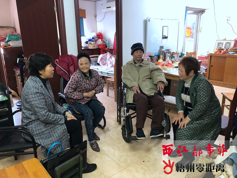 梧州零距離網-西江都市報訊(記者 謝韻 通訊員 莫斯娜)12月12日,記者從梧州市河東舊城棚改項目工程指揮部了解到,目前該項目進入房屋移交階段,部分樓房進入施工準備階段。部分已簽約的棚改居民因各種實際情況未能及時搬遷,河東舊城棚改工作人員主動上門服務,為棚改居民提供房源消息。 12月12日,河東舊城棚改項目動遷五組的工作人員來到中山路6號麗晶閣,探望剛搬進這里居住的棚改居民趙老伯和何姨。