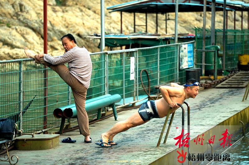 清早的冬泳西江基地就已經有游泳愛好者前來鍛煉。