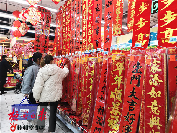 元旦將至,傳統佳節春節也即將來臨,我市年味漸濃,超市、商場洋溢著紅紅火火迎新年的氛圍,各大超市已開設了年貨專區,營造熱鬧的過年氣氛,拉開年貨備戰序幕。 傳統年貨“火紅”上架 12月24日,記者走訪我市的一些超市時觀察到,為迎接新年的到來,不少超市已經在顯眼區域設置了“年貨大街”等年貨專區,傳統年貨依然占據主流位置,如對聯、新年飾品、糖果、煙酒禮盒、臘味禮品等已經被擺放上架。 在大潤發、沃爾瑪等超市,在入口處就已掛起了春節的飾物,以紅紅火火的喜慶裝飾迎接顧客。走進超市,便是年貨專區,各種對聯、“福“字、利是封等年貨飾品紛紛“亮相”。在食品區,過年必備的糖果、餅干、堅果等食品也被整齊擺放在年貨專區。 “這幾天都忙著設置年貨專區,把各種年貨擺放上架。”在大潤發超市,記者看到工作人員不斷把各種年貨擺上貨架。在龍圩區南寧百貨二樓的超市,記者也留意到工作人員為擺放糖果等年貨忙個不停。一名工作人員表示,接下來幾天,各種類型的年貨都會被擺放出來,市民可以慢慢地挑選自己喜歡的年貨。 除了上架年貨之外,我市的超市也在布置上花起了心思,紛紛裝飾上紅燈籠、紅彩帶等,張貼著“鼠你最旺”、“恭喜發財”、“恭賀新春”、“吉祥如意”等吉祥語廣告牌,把超市裝飾得紅紅火火,營造歡樂氣氛。