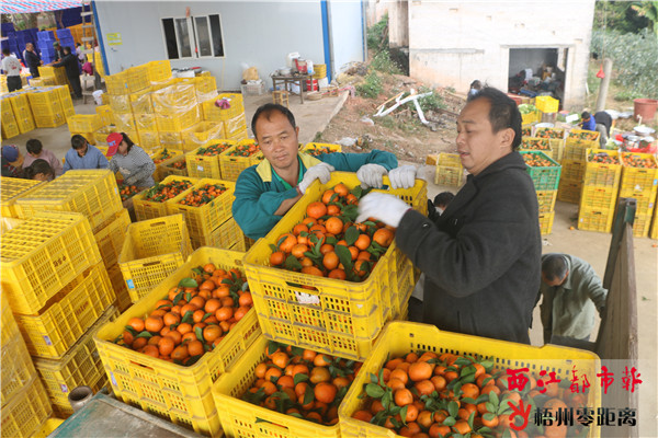 目前,藤縣的砂糖橘已進入豐收采摘期。近年來,藤縣以產業扶貧為著力點,將砂糖橘產業作為一項促農增收致富工程來抓,積極引導貧困戶發展砂糖橘種植。眼下,全縣砂糖橘種植面積達10萬畝,掛果面積約8.5萬畝,砂糖橘已成為貧困戶脫貧致富的主導產業之一。黃群禮 攝