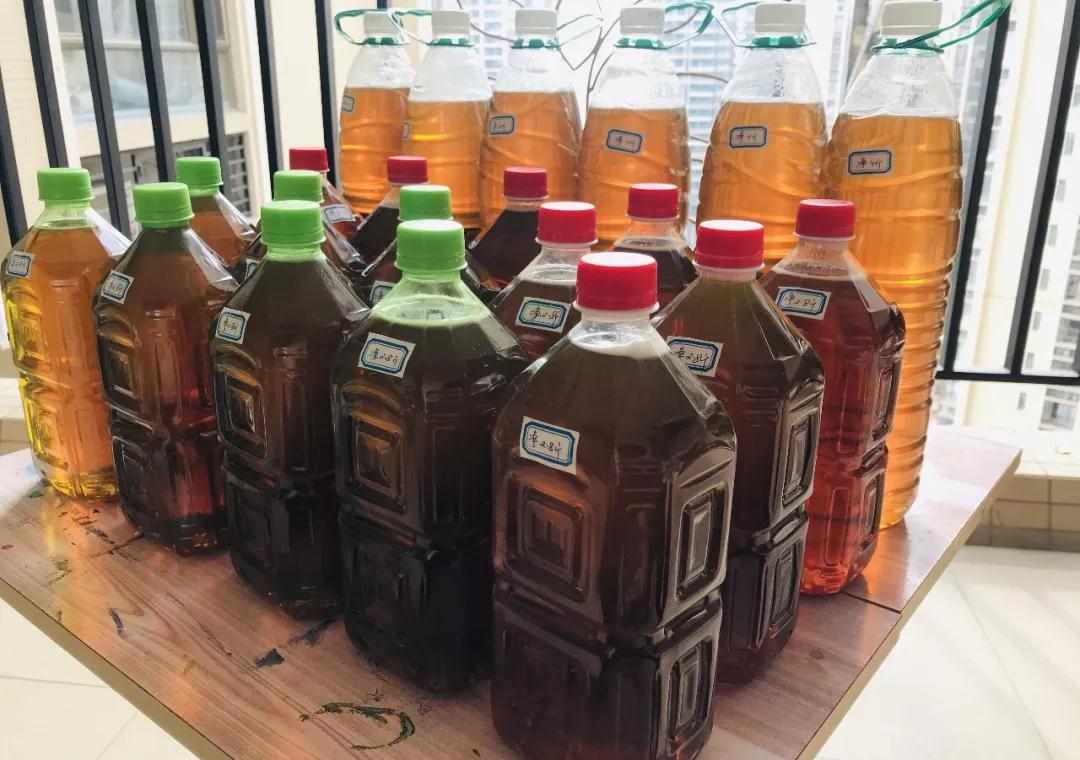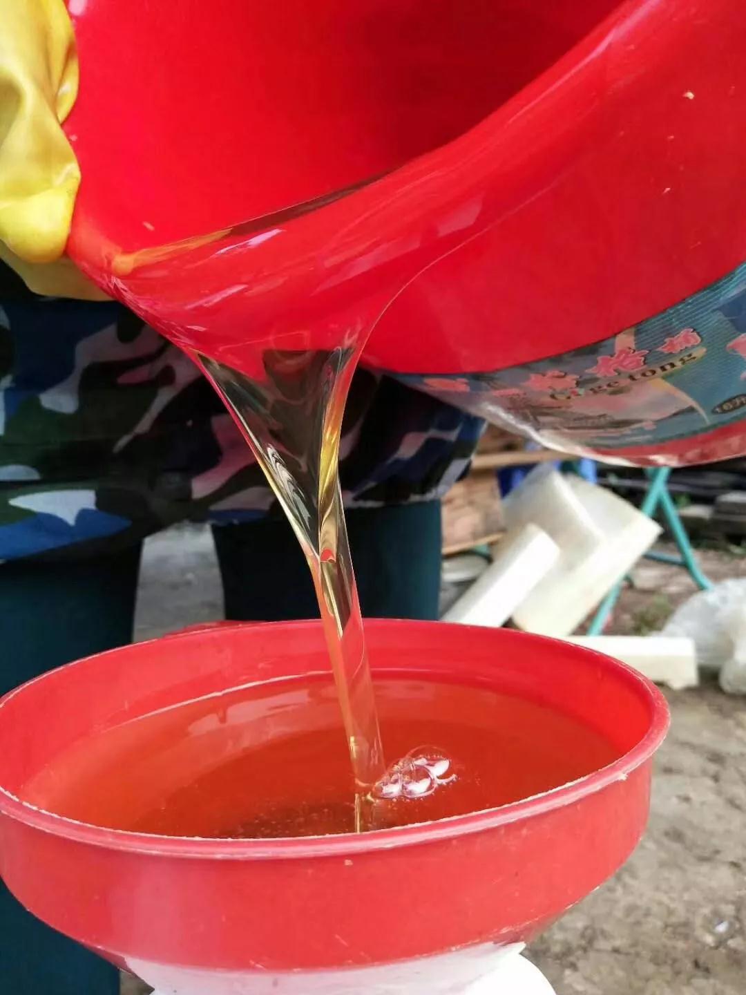 黃色的蜂蜜從桶壁緩緩流入桶底,等集到半桶蜜后把蜜從桶內(nèi)倒出來,倒入專用的容器中,過濾掉蜂蜜中的殘渣和蜜蜂,反復(fù)過濾幾次,才能得到純正天然的蜂蜜。