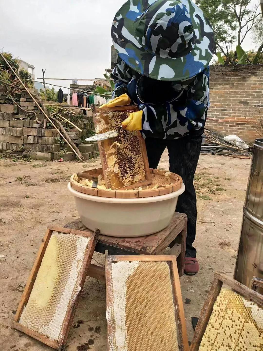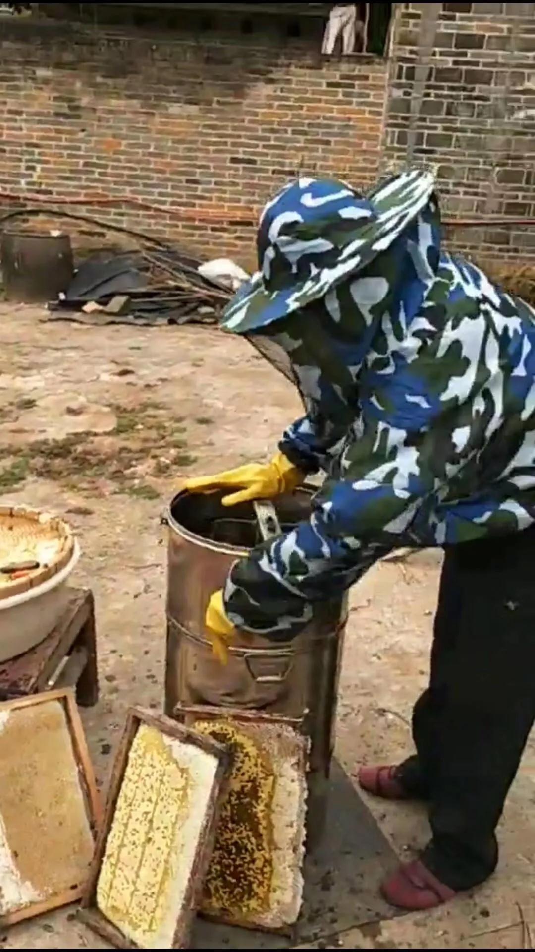 鄧伯與夫人在取蜜。 濃稠的金色米漿緩緩流下,我們只見過成品蜂蜜,卻不知道蜂蜜是怎樣采集的,讓我們一起來圍觀一下鄧伯的采蜜過程吧! 蜂蜜采集過程