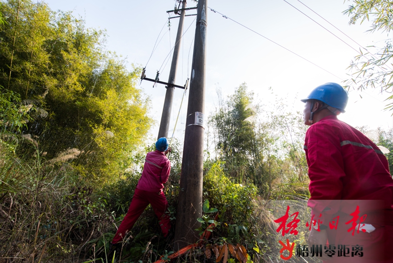 1月10日,南方電網(wǎng)新電力公司蒼梧縣公司作業(yè)員在長洲區(qū)倒水鎮(zhèn)古道村附近奮戰(zhàn),為農(nóng)網(wǎng)改造項目——大有變電臺區(qū)做好接電作業(yè)準備。何華文 攝