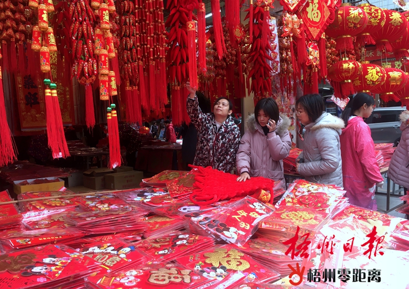 1月14日,在兩廣批發市場,市民在選購節日飾品。隨著春節日漸臨近,市場上春聯、福貼、掛飾等飾品銷售十分紅火。記者 蒙紹松 攝