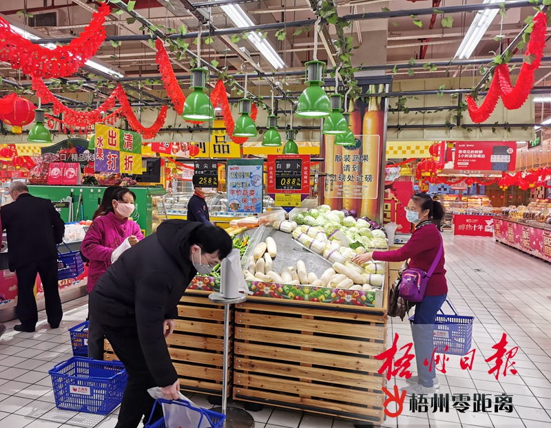 梧州零距離網-梧州日報訊(記者 曾燕)疫情防控期間,我市的“菜籃子”供應是否充足,物價是否穩定成為廣大市民關心的問題。2月2日上午,記者走訪市內部分超市、農貿市場,發現目前市場內供應品類豐富,交易價格穩定。