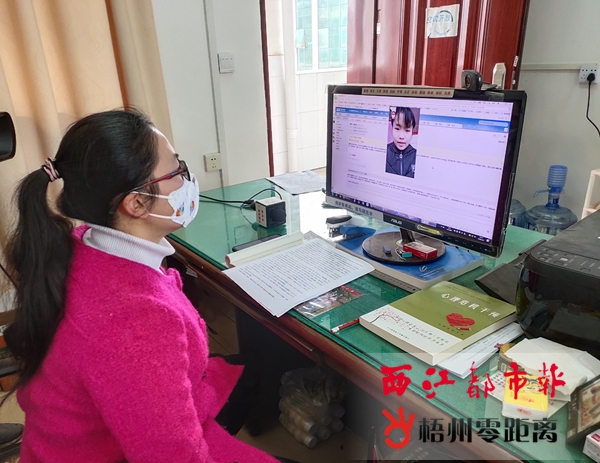 梧州零距離網(wǎng)-西江都市報訊(記者 蒙敏瑩 通訊員 史秋蘭)“你喜歡看什么書,老師可以幫你借一些,但除了看書,也要在家里做些適當(dāng)?shù)倪\(yùn)動,增強(qiáng)免疫力。”2月6日上午,在長洲區(qū)教育局基教股辦公室內(nèi),長洲區(qū)新組建的長洲區(qū)心理支持團(tuán)隊隊長龍小燕正與一名八年級的學(xué)生小李(化名)進(jìn)行視頻聊天,了解小李近期的心理狀況。