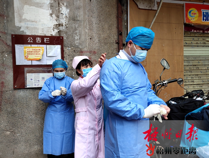 李影和同事們在居民樓前穿上防護服。記者 冼振宇 攝 走出該居民房,李影和同事們先脫掉悶熱的防護服,再用醫(yī)用消毒水從頭到腳噴灑,小心翼翼地放好醫(yī)護用品,然后前往下一戶——雞爪山工廠二路附近的居家隔離人員進行探訪。 “他們搭乘火車回梧州時,該趟列車上發(fā)現(xiàn)有確診者,因此按照應急預案,他們要進行醫(yī)學監(jiān)測,并采取居家隔離的方式先觀察有無發(fā)燒。”李影說,雖然社區(qū)衛(wèi)生服務中心不是搶救確診者的抗擊疫情一線,但對居家隔離人員進行醫(yī)學監(jiān)測工作也并非易事。走訪隔離人員和家屬時,他們都會很小心,除了做好防護,還要從語言上充分照顧對方的情緒,因為普通人遇到這種情況難免會敏感,因此在對他們開展醫(yī)學監(jiān)測時,要有一定的醫(yī)患溝通藝術,首先要態(tài)度親切,不讓他們感到害怕,同時還要注意對鄰居做好解釋工作,不要讓鄰居感到恐慌。對于目前負責的入戶監(jiān)測任務,黨齡15年的李影說,疫情就是沖鋒號,她從不去想害不害怕的事,一切聽從黨的安排,相信黨一定能帶領大家打贏這場疫情防控阻擊戰(zhàn)。 “嚴守這個關卡,絕不讓病毒有機可乘” “阿姨,對不起,那么早吵醒你們。我們是社區(qū)工作人員,今天來了解一下疫情防控期間您家的一些情況。您和家人是否接觸過市外人員?是否出過外地……”每天,由街道、社區(qū)、雙報到單位、民警等100多名黨員干部組成的萬秀區(qū)城北街道抗疫勇盾突擊隊,戴著口罩,拿著宣傳資料和表格,奔赴到各個社區(qū),逐家逐戶敲門,詳細填寫手中的摸排表。 “走了一趟轄區(qū),疫情的宣傳氛圍不夠呀,各社區(qū)要馬上補上,在小區(qū)、公共場所多宣傳……”1月31日,剛剛跑完一趟轄區(qū)的城北街道黨員干部徐梅,馬不停蹄地聯(lián)系廣告公司和各社區(qū)。“疫情宣傳橫幅,桂北6條、民主9條、北山6條、錢鑒12條,宣傳海報6幅,安裝的具體位置,我隨后一一列給你……”徐梅是位雷厲風行的女干部,作為基層黨員,她配合做好街道防疫物資的保障工作,協(xié)助街道領導召集緊急會議,落實防疫工作部署安排,開展宣傳工作等,連日來,她嗓子啞了、腿跑累了,但她說,這一切忙得有價值、有意義。 在東興街道上沖社區(qū),由于原社區(qū)黨委書記已離職,疫情防控緊急關頭,該社區(qū)黨委副書記、代理主任、懷孕8個月的準媽媽朱穎妮,毅然挑起了社區(qū)疫情防控重擔,帶領社區(qū)干部走街串巷,走訪轄區(qū)居民戶,積極宣傳新型冠狀病毒的防控知識,做好社區(qū)防控工作,發(fā)揮黨員先鋒作用。 “當前疫情防控已進入關鍵期,為避免交叉?zhèn)魅荆埬M量不出門,出門必須戴口罩。”“現(xiàn)在是非常時期,外來人員不允許通行,還請理解!”近一個多星期以來,萬秀區(qū)城東鎮(zhèn)的黨員干部一直在入村路口值守,不斷向入村群眾重復這幾句話。城東鎮(zhèn)華堂村黨支部書記吳海新不懼疫病感染風險,果斷采取措施將1名發(fā)熱群眾送往衛(wèi)生院診斷,有效制止了群眾恐慌。還有萬秀區(qū)夏郢鎮(zhèn)的黨員干部,穿上“紅馬甲”當好宣傳員、勸導員、守門員、消毒員,進村入戶為群眾和疫情防控前線人員開展“暖心行動”。角嘴街道黨員干部組成排查小組分片包干,冒著大雨和寒風對轄區(qū)居民挨家挨戶進行地毯式入戶走訪排查登記工作……
