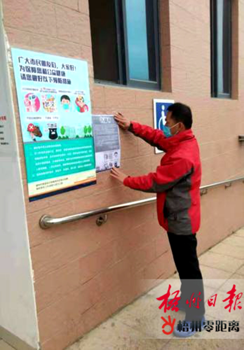 萬秀區(qū)交通運輸局黨員干部到夏郢至旺甫線路的夏郢鎮(zhèn)公交車站值守。 (吳海 攝) 在長洲區(qū)大街小巷,也有這樣一群人,當大家減少出門的時候,他們卻要走出家門,確認居民的健康信息,他們就是社區(qū)黨員干部。長洲區(qū)各街道黨委及社區(qū)黨支部充分發(fā)揮黨的核心領導作用,街道領導到各自掛點社區(qū)進行督戰(zhàn),社區(qū)黨員干部積極投身戰(zhàn)“疫”一線,發(fā)揮社區(qū)網(wǎng)格管理作用,將防控措施落實到戶、到人,同時發(fā)動物業(yè)公司協(xié)同開展疫情防控、排查、隨訪工作。 每月的“3、6、9”日是長洲區(qū)倒水鎮(zhèn)的圩日。面對當前疫情防控的嚴峻形勢,倒水鎮(zhèn)黨委政府做了一個毅然的決定:暫停圩日集市。2月3日是倒水鎮(zhèn)暫停圩日集市的第一天,通過各部門聯(lián)合行動,鎮(zhèn)區(qū)各街道一片安靜,需購置必需物品的群眾即買即走,沒有停留聚集,大部分商鋪、餐飲店也貼出了“暫時停業(yè)”的告示。 “你從哪里來的,這是要到哪里去?如果不是重要的事情,就請先回去吧。現(xiàn)在是防疫的關鍵時刻,你不能進村。”2月3日,龍圩區(qū)大坡鎮(zhèn)夜村的村口值守干部攔下一輛外來車輛并勸回。這時,一位村民想外出,值守干部馬上詢問:“你要到鎮(zhèn)上做什么?買米糠嗎?我們合作社的碾米廠就有米糠。你回去吧,要多少等下給你送家里去。”啟動疫情防控工作后,夜村黨員干部組成黨員先鋒隊,每日輪流值班守住出村的路口,對外來車輛、人員進行登記排查,對村民宣傳外出戴口罩、不聚會的防護知識。夜村黨員鄧振明說:“我們要為村民的健康安全著想,這是疫情防控的關鍵一環(huán),我們要嚴守這個關卡,絕不讓病毒有機可乘。” “群眾平安,我們就心安” 在疫情防控嚴峻的形勢下,全市退休老黨員積極發(fā)揮余熱,他們自發(fā)肩負起組織群眾、宣傳群眾、凝聚群眾、服務群眾的重要職責,用行動去詮釋一名老黨員應有的擔當與責任。 毛翠玉是一位有著45年黨齡的老黨員,同時也是繅絲廠宿舍的樓長。這幾天,她每天早上8時都會準時出門,戴好口罩,拿著消毒噴壺,對一樓到五樓的樓梯扶手、住戶門口、走廊過道噴灑消毒液。隨后,她回家簡單整理,又出門向居民宣傳防疫知識,及時向社區(qū)反饋有關信息……毛翠玉每天的任務一項接著一項,繅絲廠宿舍的居民們都為有這么一位負責的樓長感到高興,向她豎起大拇指。很多人并不知道,這位樓長已經(jīng)65歲,為這棟樓服務了10個年頭。 毛翠玉表示,基層防疫是此次疫情防控工作的重中之重,保護樓里每位居民的健康安全是她這位老黨員義不容辭的責任。“我多做一分,大家的平安就多一分,群眾平安,我們就心安。我相信,樓里的鄰居一定能齊心協(xié)力,共渡難關。”毛翠玉說。 角嘴街道藍天社區(qū)退休老黨員徐慶蘭已年近80歲,黨齡36年,她既是藍天社區(qū)的平安守護者,也是廉潔工作站監(jiān)督員。在疫情面前,徐慶蘭主動協(xié)助社區(qū)黨員干部開展防控巡查工作,到藍天港灣中心廣場勸導大家不要聚集打牌下棋,不要長期在外逗留,少出門,外出要戴口罩;打電話向親戚朋友宣傳疫情防控知識;引導街坊們不信謠、不傳謠,理性看待疫情,她以實際行動支持疫情防控工作,得到了社區(qū)黨員、居民的稱贊。在她的帶動下,社區(qū)黨員群眾紛紛行動起來,有的自發(fā)參與環(huán)境衛(wèi)生整治,有的積極勸導親友不要聚餐,有的創(chuàng)作抗擊疫情的宣傳海報……眾志成城筑起群防群治的嚴密防線。 自1月27日梧州市委老干部局發(fā)布《致全市離退休干部的一封信》后,全市廣大離退休的黨員、干部積極響應,紛紛行動,通過詩詞、書法、繪畫、粵曲等形式,表達他們對疫情防控工作的大力支持,對戰(zhàn)斗在一線的醫(yī)務工作者的崇高敬意,為打贏疫情防控阻擊戰(zhàn)凝聚正能量。梧州市詩詞學會的老同志們響應市委老干部局號召,在微信群以詩歌接龍的形式,為中國加油,為武漢加油,為奮戰(zhàn)在一線的勇士加油。 “如果連我都不敢上,群眾還怎么相信我們” 患難見真情,廣大企業(yè)黨員在國難當前,用實際行動彰顯企業(yè)黨員應有的社會擔當。 沒有防護服,只有一只最普通的口罩;沒有誓師會、請戰(zhàn)書,只是接到一條通知,梧州市城投集團的黨員干部便義無反顧地踏上戰(zhàn)場。1月24日,收到集團緊急集結(jié)通知,集團物業(yè)部經(jīng)理、黨員文雨佳匆忙放下手中正在進行的年夜飯準備工作,戴上口罩匆匆離家。城投集團下屬有三個物業(yè)公司,共管轄7個小區(qū),有近萬戶住戶和租戶,文雨佳深知疫情防控工作刻不容緩。回到工作崗位后,他結(jié)合各小區(qū)實際情況,馬上派人對小區(qū)內(nèi)的公共區(qū)域及高頻率接觸點進行全面清潔、消毒,并帶隊前往幾個保障住房小區(qū),挨家挨戶向居民群眾分發(fā)防控疫情宣傳單和防護手冊,確保群眾知曉率達100%。在得知紅安小區(qū)有租戶剛從湖北返梧的消息后,文雨佳立即與社區(qū)工作人員聯(lián)系租戶,上門了解情況,勸導租戶自我隔離14天。隨后,他每天向小區(qū)物業(yè)了解該戶的最新情況和需求,專門列表記錄跟進相關工作。家人擔心文雨佳的安全,勸他別太拼,他卻義正言辭地對家人說:“舍小家,保大家,把好疫情防控第一道關,是我作為黨員干部義