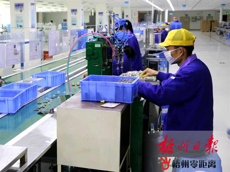 梧州零距離網-梧州日報訊(記者 祝琳 通訊員 鐘政 霍沼全)2月10日,根據上級和我市疫情防控工作要求,全市具備復產復工條件的各類企業和建筑工地,經提出申請報備、相關部門審核通過后,可陸續恢復生產和施工。復產復工首日,全市廣大工業企業、項目工地在做好疫情防控各項措施同時,落實安全生產要求,有序組織企業員工、施工人員返崗就位,逐步開展生產和建設工作。 走進粵桂合作特別試驗區國光梧州產業基地,現代化的生產車間寬敞明亮、干凈整潔,自動化生產線有序運轉,生產線旁工人們間隔拉開、穿戴整齊,穿著工作服、頭戴工作帽,并統一佩戴口罩,在各自的工作崗位上忙碌操作。當天是梧州國光科技發展有限公司節后復產的首日,企業嚴格按照疫情防控有關要求,落實了生產車間、辦公場所、公共區域消毒、通風等防控措施,并向企業員工提供了口罩等防護物資,基本滿足復工生產的需要。國光公司方面表示,疫情防控期間,企業將密切關注疫情的變化發展,加大疫情防控信息宣傳,加強對員工、環境、設備等各項防控措施的落實,在做好疫情防控同時,確保人員安全健康上崗,有序恢復達產達效。