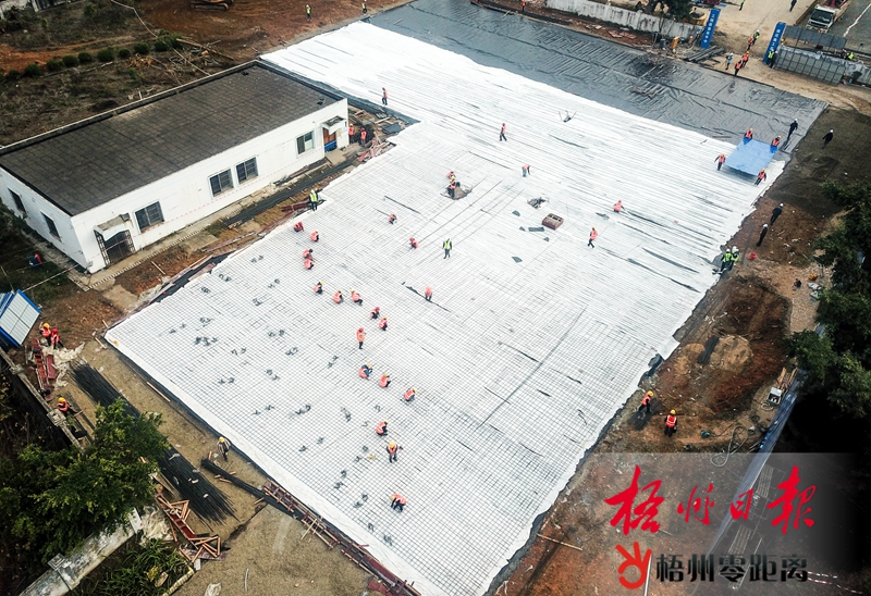 2月10日開始動工興建的市第三人民醫(yī)院建設自治區(qū)后備應急醫(yī)院項目(包括新建臨時負壓病房和改造現(xiàn)有病房),施工單位為了能準時、高效地完成項目建設,工地24小時不停歇作業(yè),全體人員輪番上崗,項目建設速度十分快,現(xiàn)場是一天一個樣。目前,已完成基礎墊層、筏板施工,并吊裝板房,施工進度比計劃時間有所提前。