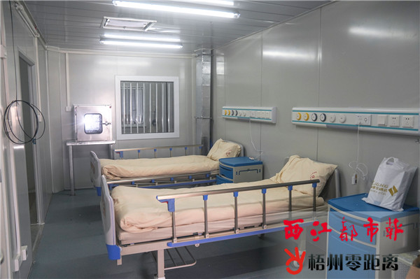梧州零距離網-西江都市報訊(記者 吳艷虹)2月19日,記者了解到,市第三人民醫院應急醫院項目主體建設在18日基本完成后,負壓病房區內的樣板病房在19日基本通過驗收。接下來,其余病房將根據樣板病房進行原版復制。 當天,記者看到負壓病房區的頂棚鋼結構基本完成,進入病房區的兩個樓梯已建成并安裝護欄,病房區外的場地已部分進行了混凝土硬化。樣板病房前后各有一扇門,分別連接兩個走廊,前門連接醫護人員通道,后門連接病人通道。從正門進入,首先是一個約18平方米的緩沖間,其左右各有一個約18平方米的病房,均為雙人房,前、后門的墻上均安裝有一個傳遞窗。每張病床床頭上方均有一個設備帶和一個空氣過濾器,每間病房內均有獨立衛生間,內設坐便器、熱水器、洗手盆和淋浴間。