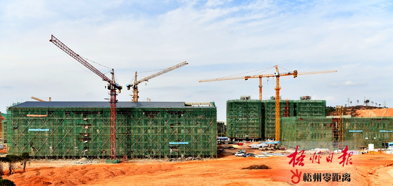 據了解,梧州醫專項目一期14棟主體建筑已全部封頂,操場以及跑道部分設施已經完工。目前,該項目施工人員全部到崗,施工單位做好各項疫情防控工作,抓緊開展樓房內外裝修和校園道路、綠化建設等施工項目。記者 李鴻榮 攝