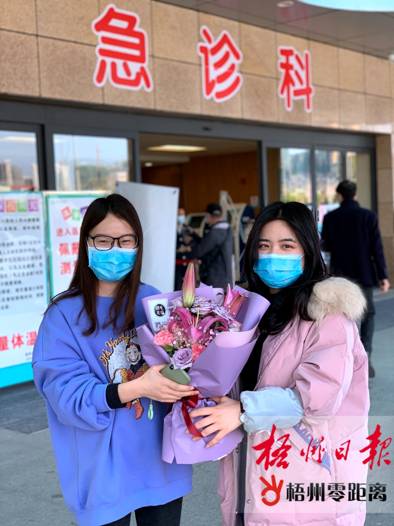 采寫:梧州日報記者 全淦枚 “感謝大家,我們醫院收到愛心米粉了?!?月20日,桂東人民醫院的醫務人員收到一份份愛心桂林米粉,飄著香味的米粉,讓近段時間以來奮戰在疫情防控一線的醫務人員倍感溫暖,這是他們在新冠肺炎疫情發生以來陸續收到的愛心物品之一。 新冠肺炎疫情發生以來,我市廣大醫務人員義無反顧奔赴戰“疫”一線,全力以赴守護百姓的健康。為了讓這些最美“逆行者”感受到社會的關心與溫暖,社會各界人士紛紛用自己的方式支持醫務人員的工作,向他們送上各種愛心物資,用一支鮮花、一瓶牛奶、一份水果、一盒米粉、一份承諾……彰顯出梧州城的溫度。 鮮花送給最美的“逆行者” 出征支援武漢的醫務人員,花店免費贈送花束……2月22日,一則免費贈送鮮花的海報信息在梧州市民的朋友圈中轉發,這是在新興一路經營鮮花店的胡菲所發出的。