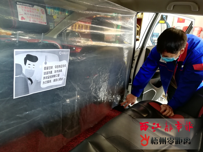 據悉,連日來,滴滴出行科技有限公司梧州分公司為滴滴網約車免費安裝防護膜和消毒,并向司機派發口罩、消毒液等防疫物資,以保障廣大司機和乘客的生命健康安全。記者 朱元冬 攝