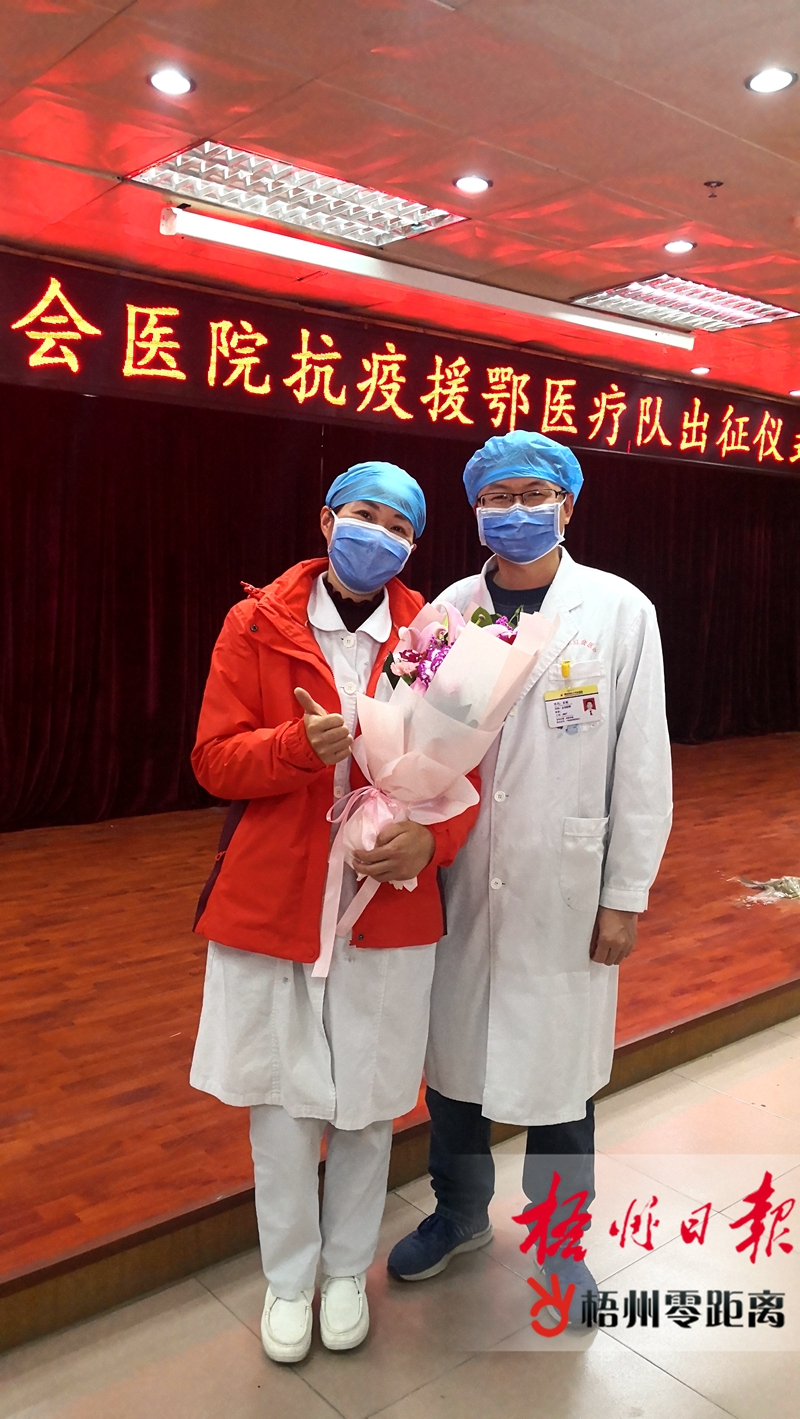 潘玲在武漢發回的照片。 (圖片由潘飛提供) 潘飛的父母是市工人醫院的退休醫生,他和妹妹從醫正是受到了父母的影響,尤其是妹妹考上了廣西醫科大學,如今擔任廣西中醫藥大學附屬瑞康醫院呼吸內科副主任,很好地繼承了父母的“白大褂”。而潘飛讀的是中醫專業,如今擔任市婦幼保健院辦公室主任,負責綜合協調醫院的抗疫工作。