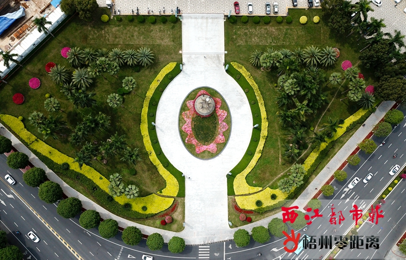 2月28日,在空中俯瞰,市政府廣場的綠化區域猶如一條鑲嵌了粉紅寶石的巨大項鏈。近段時間,我市園林綠化部門對全市公園、景點、街道的時花陸續進行更換,各種應季鮮花在城區開得正艷,到處洋溢著春天的氣息。記者 楊揚 攝