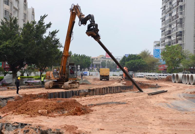 3月9日,施工機(jī)械在凱萊大酒店對出路段進(jìn)行大型管道基礎(chǔ)施工。