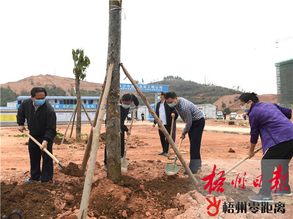 3月12日,在植樹節當天,全桂壽、鐘暢姿等市領導在梧州醫學高等專科學校項目工地植下六旺樹。梧州日報記者 蒙紹松 攝 自2月27日市委、市政府召開全市造林綠化工作動員會以來,市級國家機關、企事業單位迅速行動,至今已開展270多次植樹活動。全桂壽強調,造林綠化人人有責。全市各級各部門要積極響應市委、市政府號召,投入造林綠化工作中去,強化梧州綠水青山優勢,提升廣西東大門形象。各級領導干部要帶頭垂范,抓住春季大好時光多種樹、種好樹、管好樹。要重在行動、重在成效,積極動員全民參與,在全市掀起造林綠化高潮。 全桂壽還查看了梧州醫學高等專科學校建設情況。目前,該校主體建筑已經全部封頂,正在抓緊推進室內外裝修工作。全桂壽要求,施工單位要科學合理組織施工,加快推進項目建設,加班加點把受疫情耽誤的工期搶回來。龍圩區和市直相關部門要全力做好服務,幫助解決困難和問題,保障項目建設高效有序推進。校方要提前謀劃推進綠化美化工作,營造優美舒適的校園環境。 市黨政軍領導謝凌云、黃振饒、蔣海東、尤易武、吳浩嶺、文建中、鐘碧珍、黃中賢、張惠強、馬輝、徐文偉,市中級人民法院院長滕志華,市人民檢察院檢察長黃昱,梧州學院副院長賓月景,以及各級各部門負責人200多人參加了植樹活動。