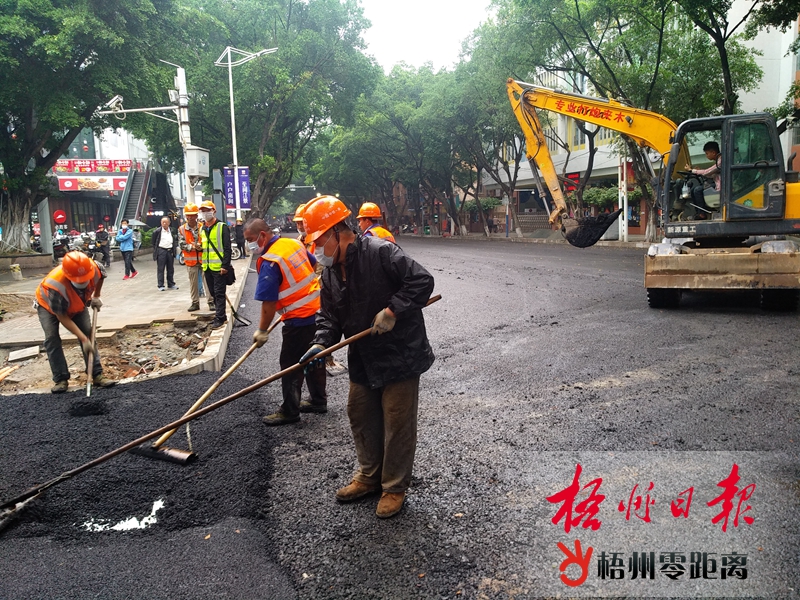 3月17日,在旺城廣場附近的文瀾路路段,施工機械和工人正在鋪設柏油路面。 據了解,文瀾路提升改造工程加快推進,大部分人行道已經完成了重新改造,梧州供電局至旺城廣場路段完成了柏油鋪設,剩下路段正在加快鋪設進度。