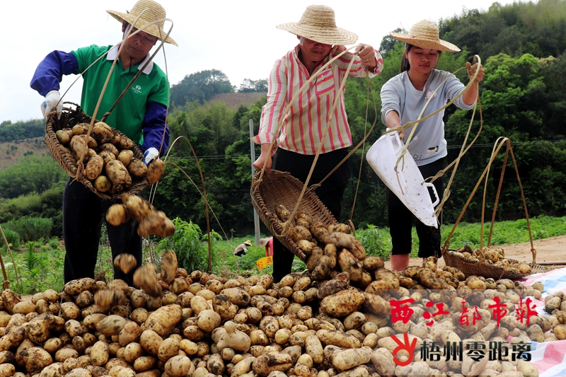3月22日,在岑溪市波塘鎮(zhèn)龍?zhí)锎羼R鈴薯基地,貧困戶忙著采挖、挑運(yùn)、歸堆馬鈴薯,一派忙碌的勞動景象。