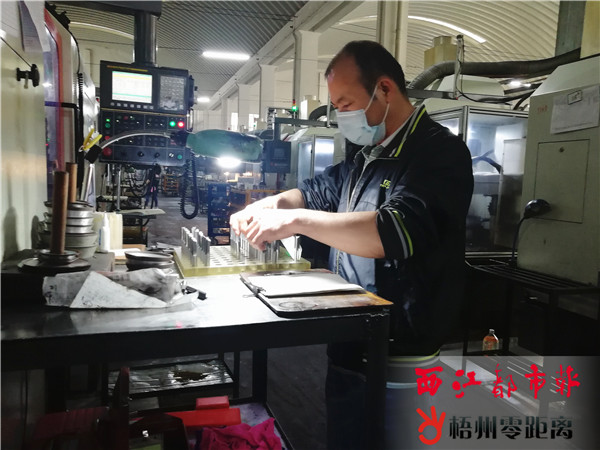 3月26日,梧州市三禾添佰利五金加工有限公司的生產車間里,工人們在加緊時間生產。