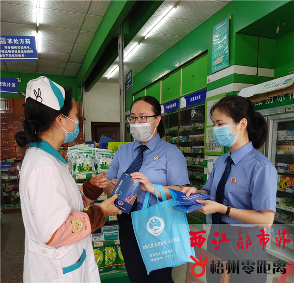 3月27日,岑溪市人民檢察院干警在疫情防控責任區、超市、藥店開展掃黑除惡專項斗爭宣傳活動,廣泛發動社區居民力量,打擊黑惡勢力。 黃泳霖 卓嚴科
