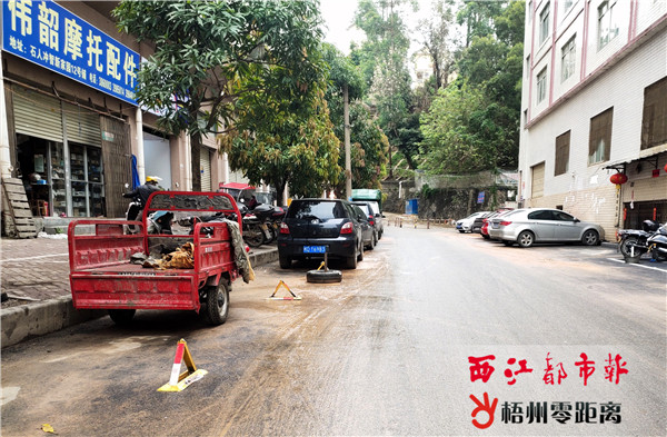 在長(zhǎng)洲區(qū)石人沖路智新家園小區(qū)附近,有市民在路邊私設(shè)地鎖,將道路占為私人車位,不僅影響了該道路的正常通行,也影響了市容環(huán)境。 西江都市報(bào)記者 蒙敏瑩 攝