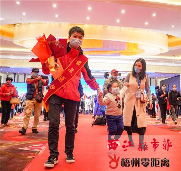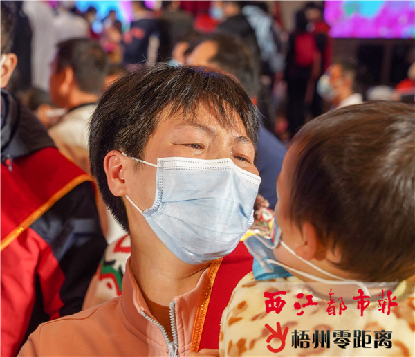 歡迎儀式過后,市工人醫院護師許勇一家三口手牽手回家。西江都市報記者 陳凡 攝