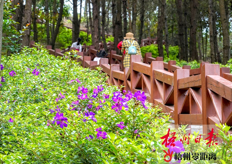 近段時(shí)間,炳蔚塔景區(qū)上山階梯兩側(cè)巴西野牡丹、茶花盛開,一些市民利用周末時(shí)間來炳蔚塔登高遠(yuǎn)望,賞花賞春景。