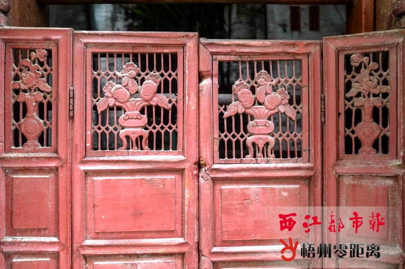 ①金龍巷一處民宅的兩扇雕花木門,雖略顯破舊,但依然可以看出精美的手工。