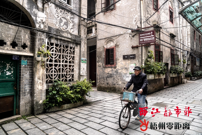 ⑤居民騎著自行車在維新里內(nèi)穿行。 “幾十年過去了,這條街依然是當(dāng)年的格局。”胡敏安說,雖經(jīng)歲月洗禮,不少房子漸漸失去了當(dāng)年的色彩,但隨著金龍巷歷史文化街區(qū)、維新里歷史文化街區(qū)被列入自治區(qū)級歷史文化街區(qū),他相信百年老街區(qū)將重新煥發(fā)光彩。