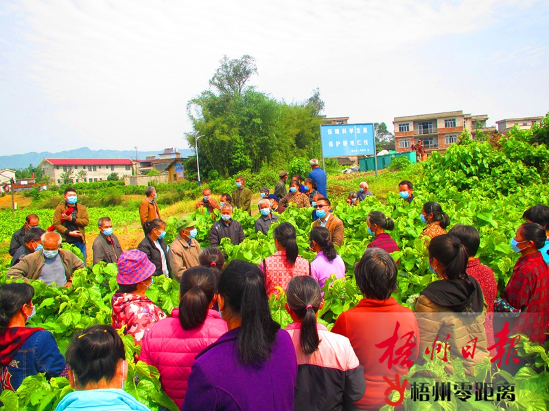 4月13日,在蒙山縣文圩鎮龍定村,農藝師在向種桑養蠶專業戶講授種桑養蠶技術。