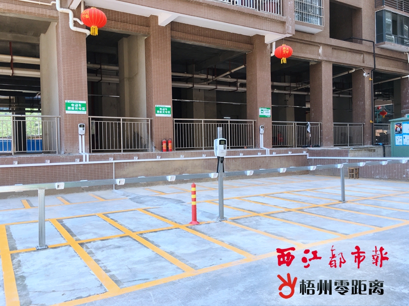 藤縣華府御園小區(qū)側(cè)門入口處建設(shè)的充電樁 本報(bào)記者 林丹莉 攝 業(yè)主:不應(yīng)占用公共休閑場所